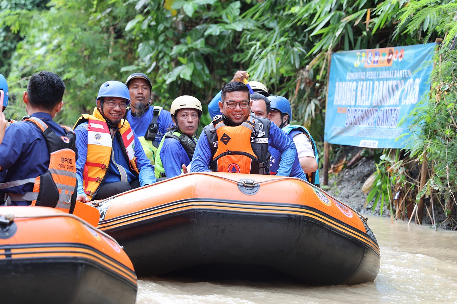 Hal ini disampaikan saat dirinya mengikuti Arung Kali Cibanten 2025 bersama Komunitas Peduli Sungai Banten, Selasa (15/7/2025). Kegiatan pengarungan yang diikuti Gubernur bersama Wali Kota Serang Budi Rustandi, Balai Besar Wilayah Sungai Cidanau, Ciujung Cidurian (BBWS C3), Kantor SAR Banten, Badan Penanggulangan Bencana Daerah (BPBD) Provinsi Banten, Dinas Pekerjaan Umum dan Penataan Ruang (PUPR) Provinsi Banten, serta berbagai komunitas dan relawan. Arung sungai dimulai dari pintu kecil yang berada di Gedung Negara Provinsi Banten Jl Brigjen KH Syam’un No. 5, Kota Serang dan berakhir di Jembatan Kidemang, Unyur, Kasemen.