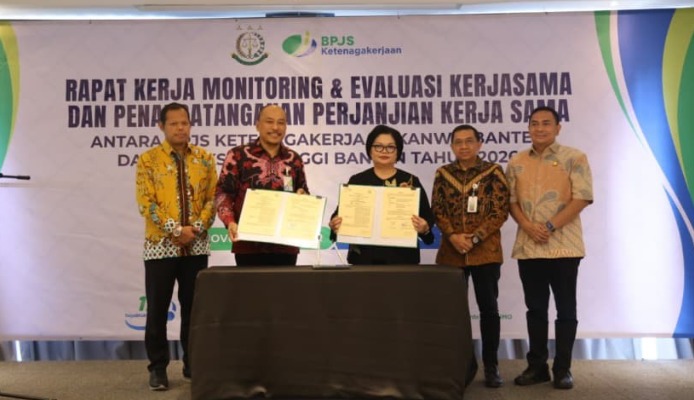 Penandatanganan perjanjian kerjasama ini dilakukan langsung oleh Kepala Kantor Wilayah BPJS Ketenagakerjaan Wilayah Banten Eko Yuyulianda dengan Kepala Kejaksaan Tinggi Banten Bernadeta Maria Ema Elastiyani. Jumat, 24 April 2026.