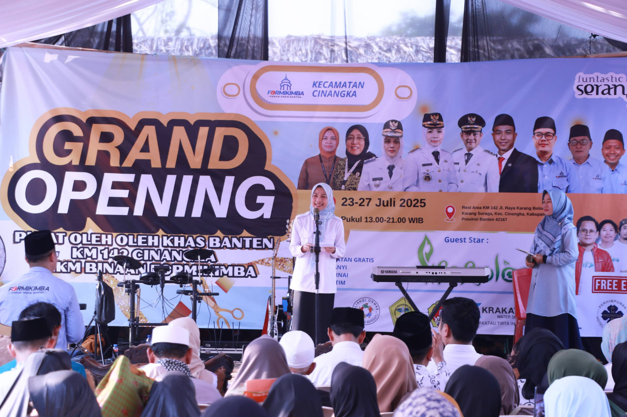 SERANG, (siberone.co.id) – Bupati Serang Ratu Rachmatuzakiyah meresmikan Pusat Oleh-oleh Khas Banten di Rest Area KM 142 wisata Pantai Anyer-Cinangka dan Gebyar UMKM Kabupaten Serang pada Rabu, 23 Juli 2025.