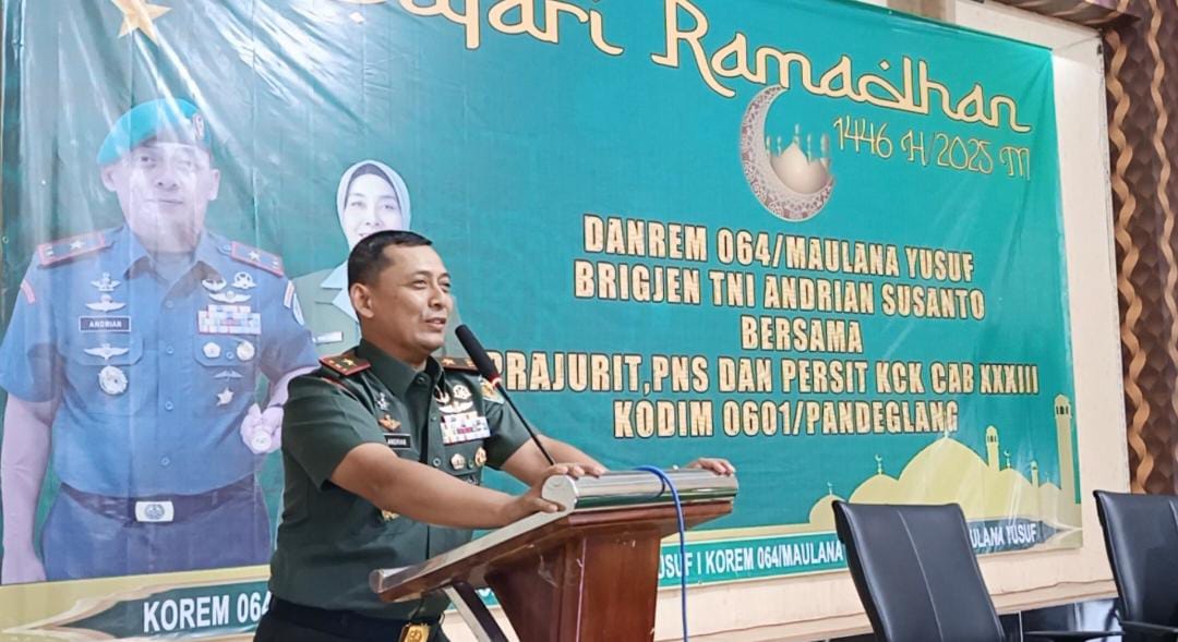 PANDEGLANG, (siberone.co.id) – Komandan Korem 064/Maulana Yusuf Brigjen TNI Andrian Susanto S.I.P., M.Han., M.I.Pol., lakukan Safari Ramadhan 1446 H di Makodim 0601/Pandeglang, Jalan pendidikan no 1 Pandeglang, Rabu (12/03/25).