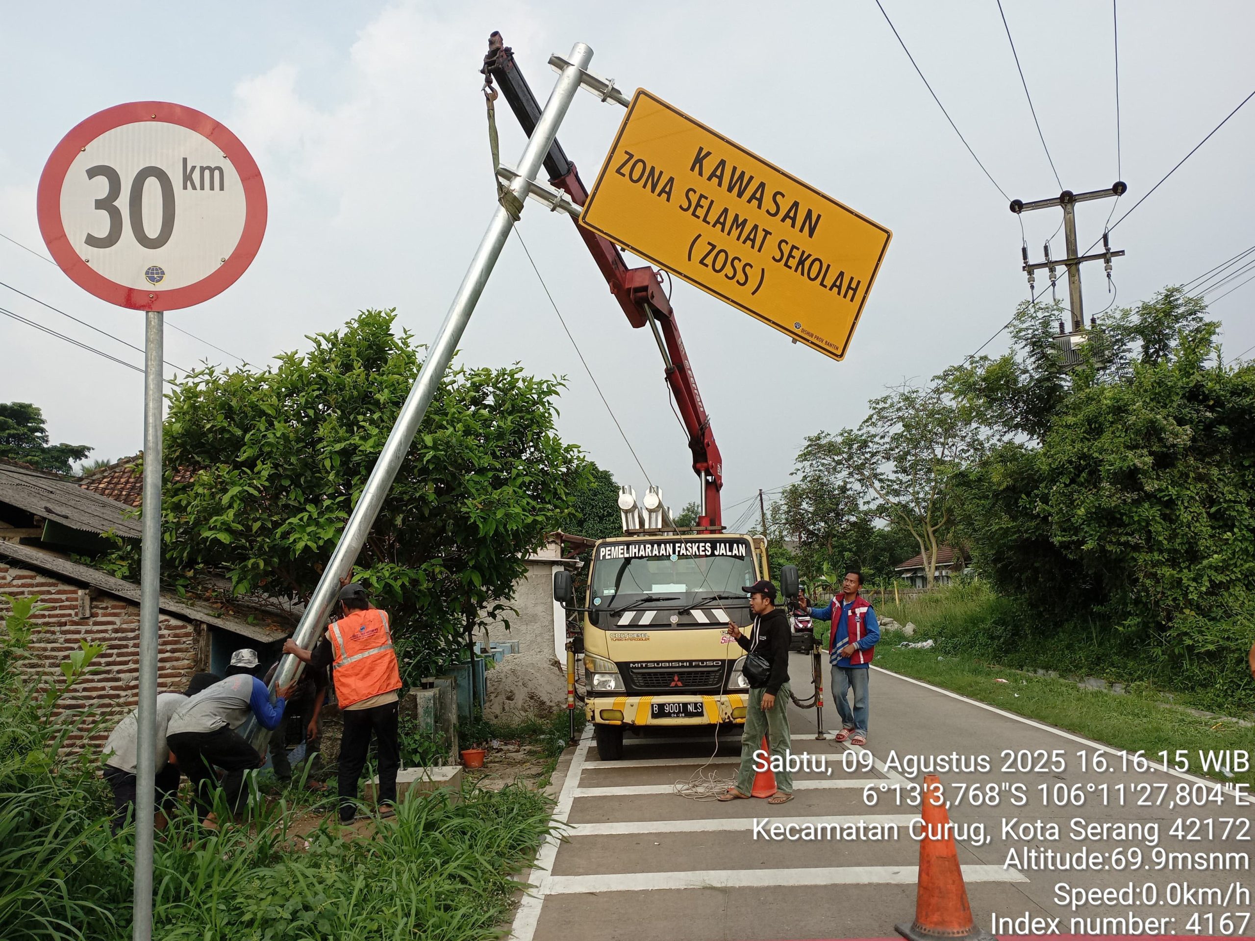 Banten, (siberone.co.id) -Demi meningkatkan keselamatan dan kenyamanan siswa di sekitar lingkungan sekolah, Dinas Perhubungan (Dishub) Provinsi Banten tengah menyelesaikan pembangunan 15 titik Zona Selamat Sekolah (ZOSS) yang tersebar di lima kabupaten/kota. Proyek tersebut kini telah mencapai 75 persen progres dan ditargetkan PHO (Provisional Hand Over) selesai pada minggu ketiga bulan Agustus 2025.