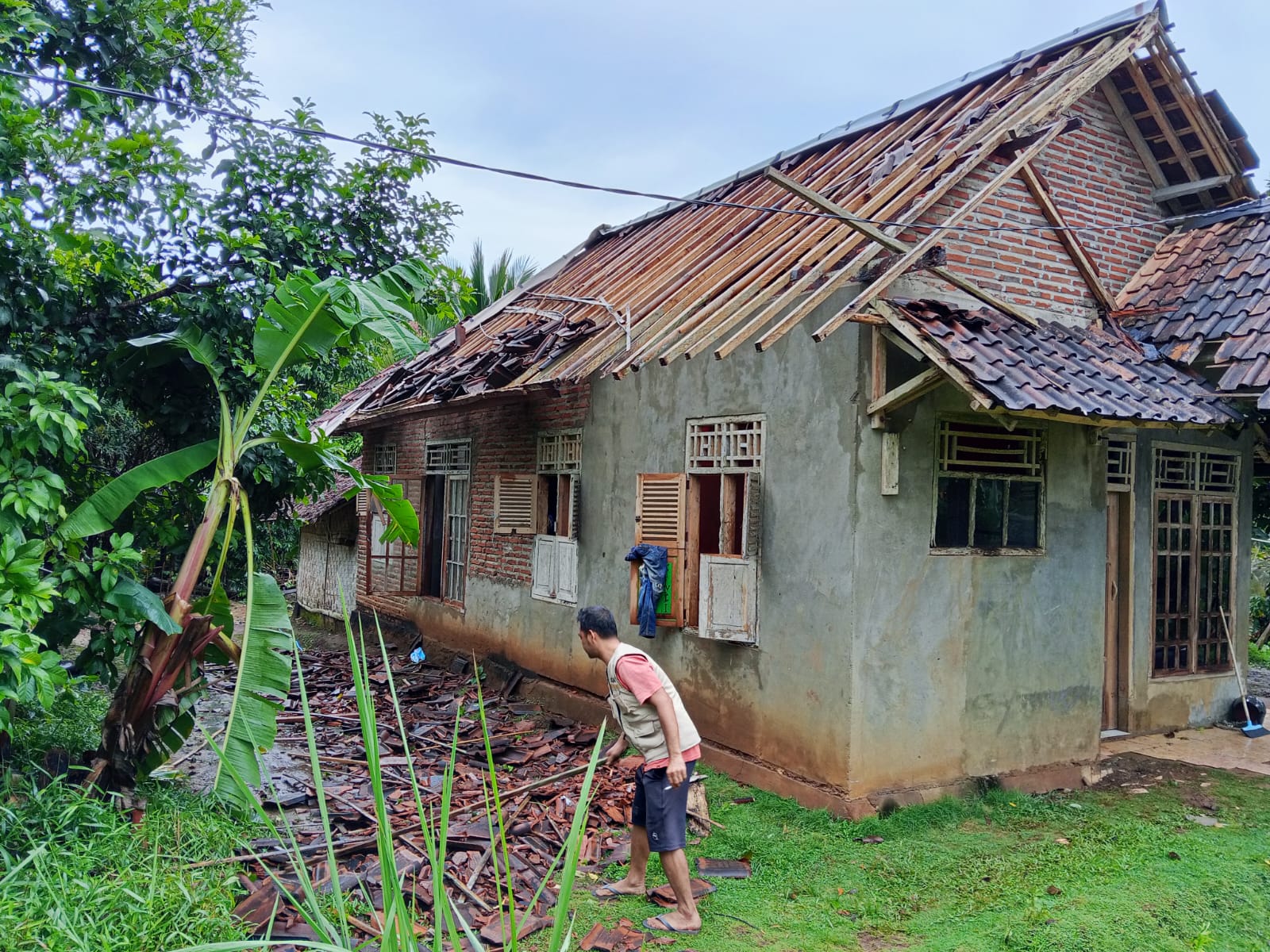LEBAK ( siberone.co.id ) – Tiga unit rumah tinggal warga Desa Pondokpanjang, Kecamatan Cihara, Kabupaten Lebak mengalami kerusakan berat dengan atapnya berjatuhan akibat angin kencang yang melanda sekitar pukul 13:30 WIB Sabtu dinihari. (20/12/2025).