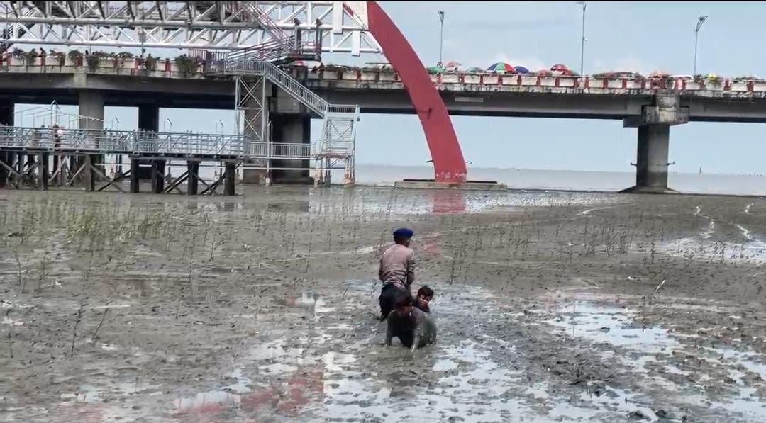 Dalam kegiatan pengamanan tersebut, personel Dit Polairud Polda Jatim menemukan dua anak yang terjebak di pinggiran Pantai Kenjeran akibat air laut yang surut dengan kondisi lumpur yang sangat tebal. Kedua anak tersebut tidak dapat bergerak dan terjebak di tengah lumpur, sehingga membutuhkan pertolongan segera.