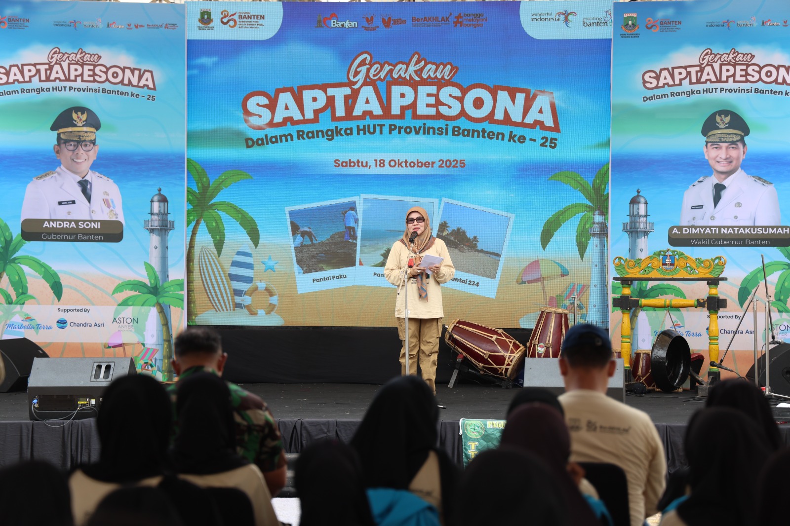 Demikian disampaikan Gubernur Banten Andra Soni dalam sambutannya pada kegiatan Gerakan Sapta Pesona yang dibacakan Pelaksana Tugas (Plt) Kepala Dinas Pariwisata Provinsi Banten Linda Rohyati Fatimah