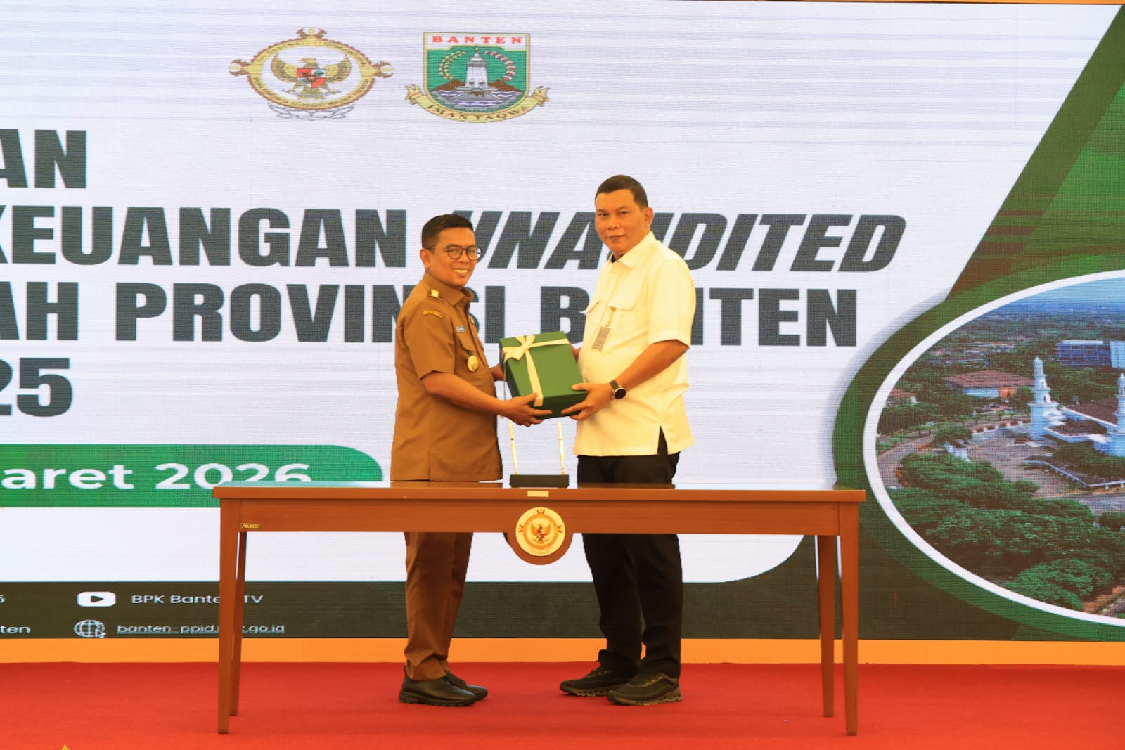 Penyerahan LKPD diawali dengan penandatanganan berita acara dari Gubernur Andra Soni kepada Kepala BPK Perwakilan Provinsi Banten Firman Nurcahyadi. Kemudian dilanjutkan dengan penyerahan LKPD Pemprov Banten dan dilanjutkan dengan delapan Kabupaten dan Kota.