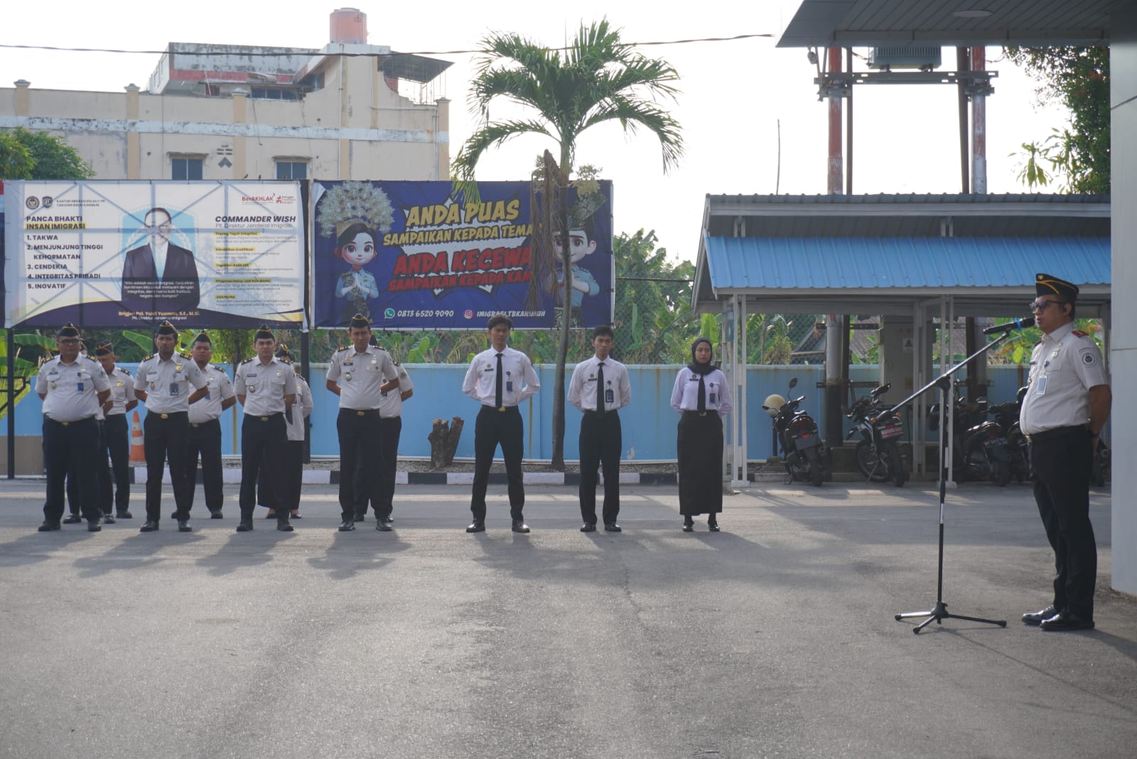 Saat ditemui, Kepala Kantor Imigrasi Kelas II TPI Tanjung Balai Karimun, Dwi Avandho Farid mengatakan apel pagi ini menjadi momentum untuk memperkuat kedisiplinan dan semangat kerja di lingkungan Kantor Imigrasi Kelas II TPI Tanjung Balai Karimun pasca pelaksanaan libur bersama dan WFA (Work From Anywhere) dalam rangka Hari Raya Nyepi dan Idul Fitri 1447 H.