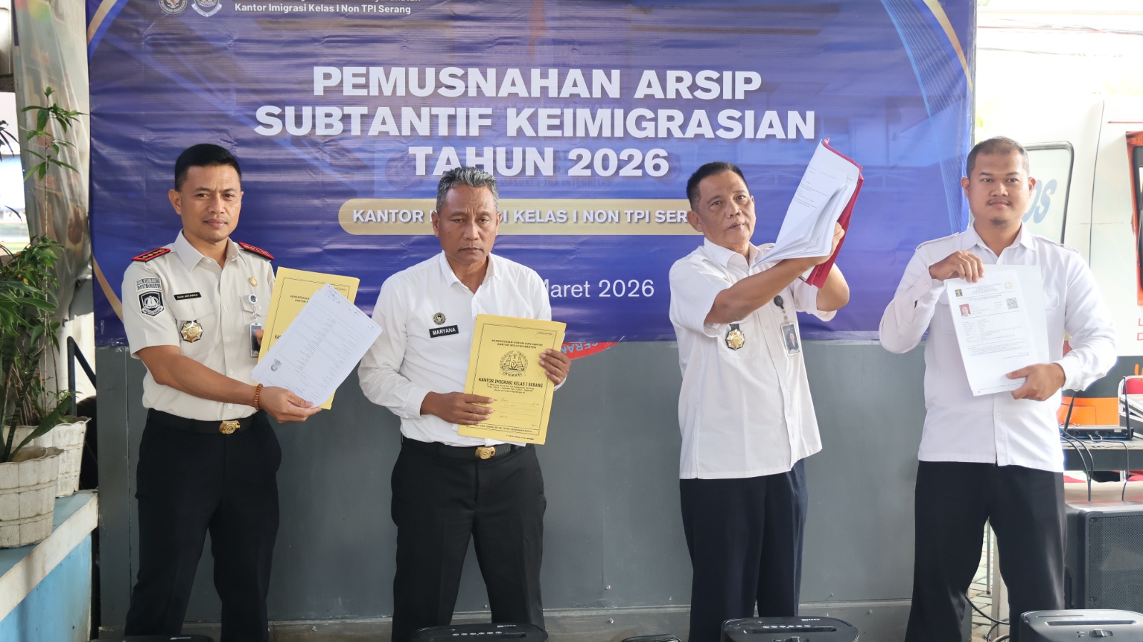 “Pemusnahan akan dilakukan di halaman Kantor Imigrasi Kelas I Non TPI Serang dengan berkas Arsip yang sudah disetujui Pemusnahannya yang disampaikan melalui surat Kepala Arsip Nasional Republik Indonesia Nomor B/KN.00.01/43/2026 Perihal Persetujuan Pemusnahan Arsip.” Pungkas I Gusti Agung Komang Artawan.