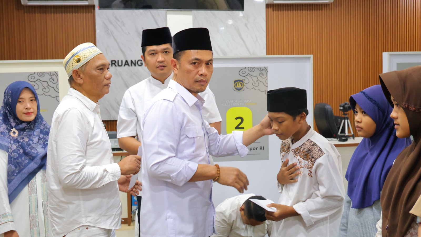 Penyerahan bantuan dan santunan dilakukan oleh Kepala Kantor Imigrasi Kelas I Non TPI Serang, I Gusti Agung Komang Artawan bersama perwakilan Kantor Wilayah Direktorat Jenderal Imigrasi Banten serta Dharma Wanita Persatuan Kantor Imigrasi Kelas I Non TPI Serang. Kegiatan kemudian dilanjutkan dengan tausiyah agama, tahlil bersama, dan doa sebelum memasuki waktu berbuka puasa.