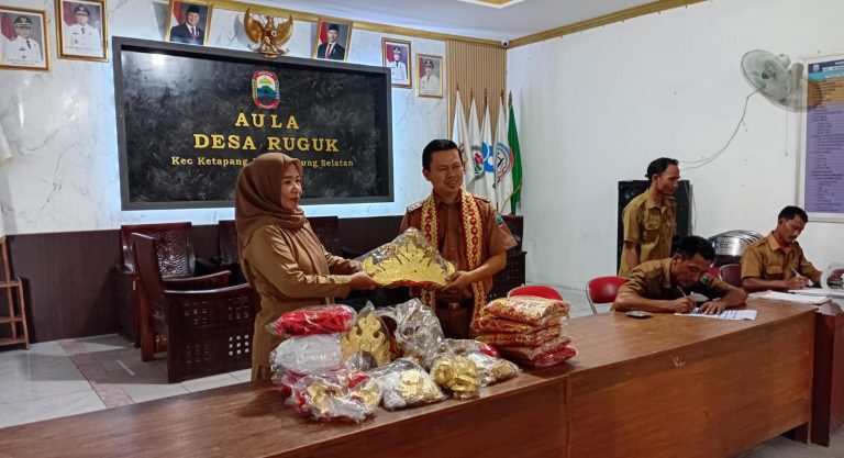 Lampung Selatan (siberone.co.id) — Kepala Desa Ruguk, Kecamatan Ketapang, Saiful, secara resmi menyerahkan bantuan kelengkapan kesenian kepada dua Sekolah yang ada di Desa Ruguk, Senin (20/04/2026).
