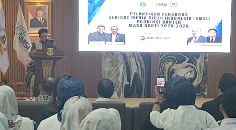 Banten, (siberone.co.id) – Pelantikan pengurus Serikat Media Siber Indonesia (SMSI) Provinsi Banten masa bakti 2025-2029 di Gedung Serba Guna DPRD Banten pada Jumat (12/12) sore, diawali dengan suasana khidmat.