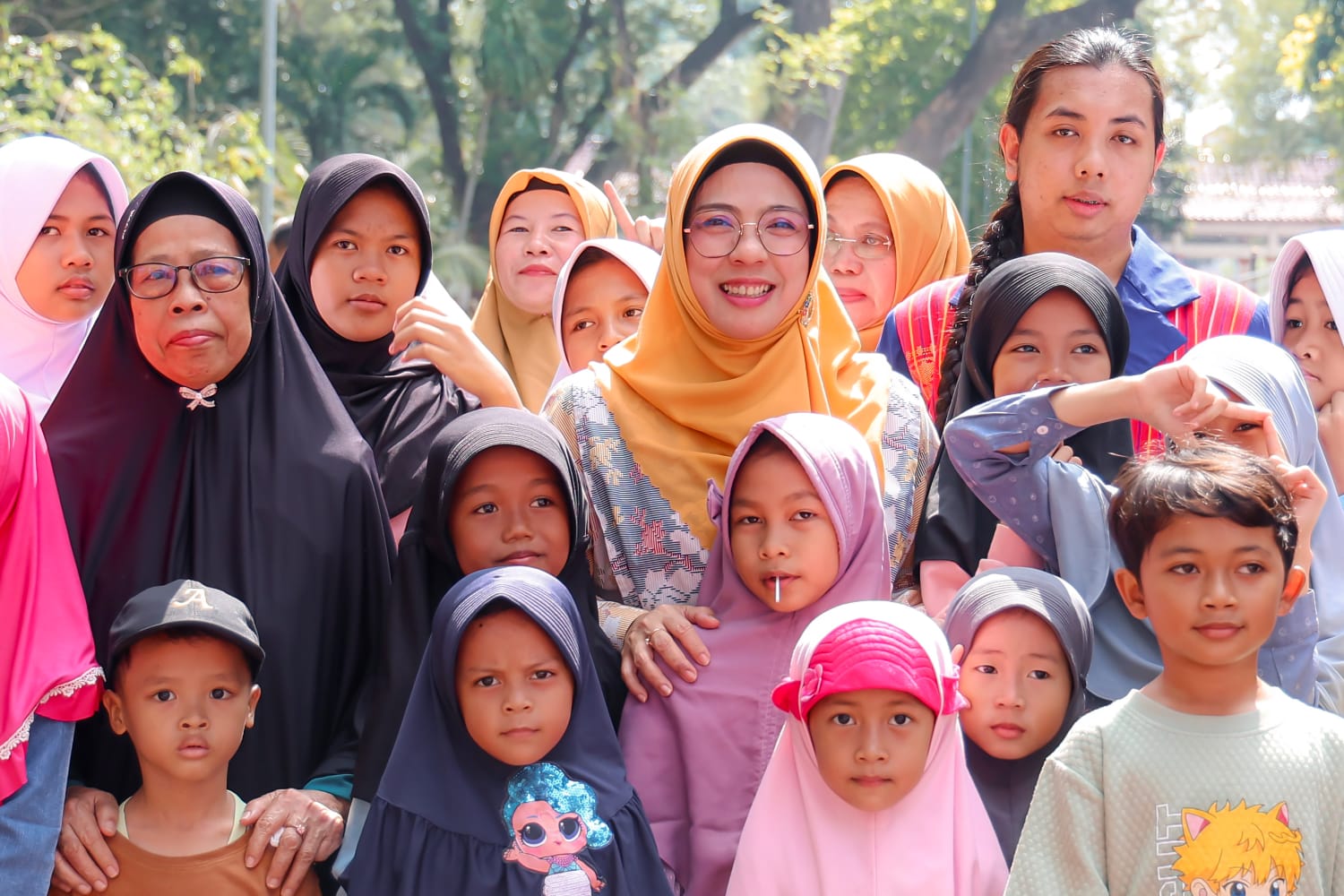 “Pohon di sekitar kita ini juga dirawat loh adek-adek. Ini usianya banyak yang sudah tua, tapi enak kan ada di sini, adem,” kata Tinawati.