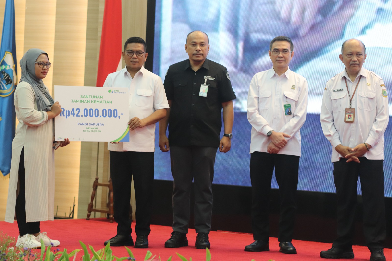 Diantaranya, santunan diserahkan kepada para ahli waris Almarhum Pandi seorang nelayan di Kota Cilegon. Ahli waris menerima santunan JKM sebesar Rp. 42.000.000.