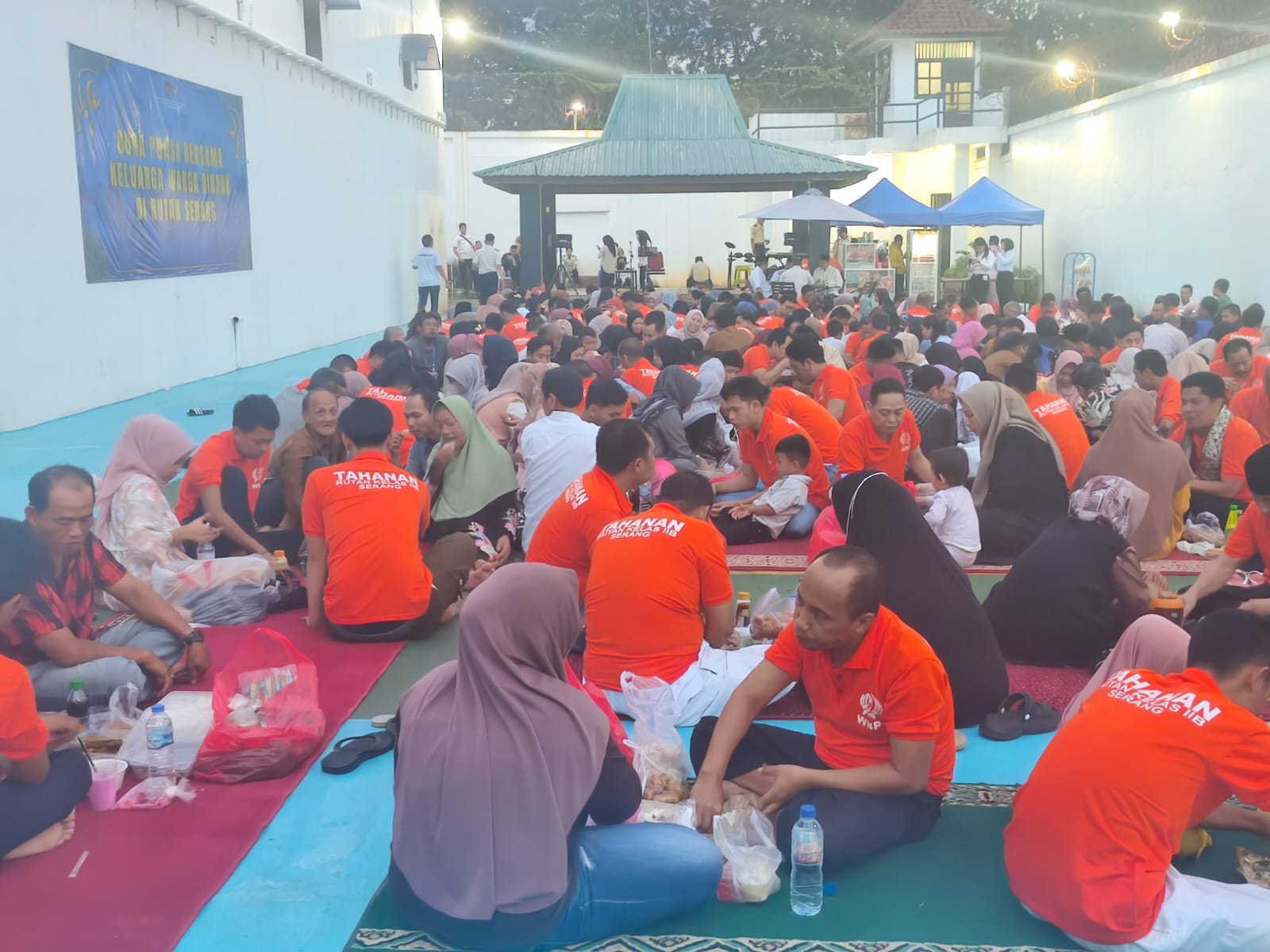 SERANG, Siberone.co.id – Ratusan Warga Binaan Pemasyarakatan (WBP) Rutan Kelas IIB Serang buka puasa bersama keluarga di lapangan Rutan Kelas IIB Serang. Senin, 23 Februari 2025.