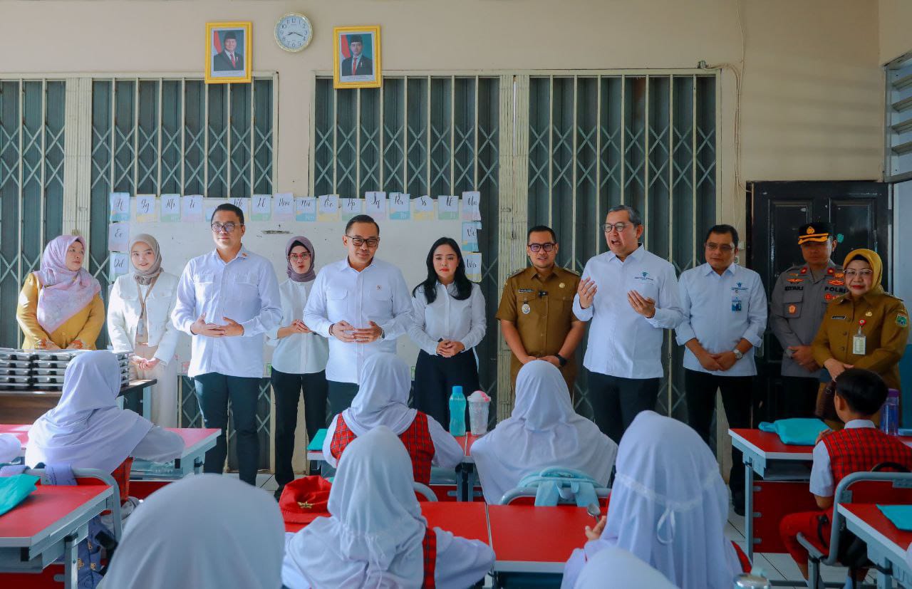 SERPONG, (siberone.co.id) – Wakil Menteri Investasi dan Hilirisasi/Badan Penanaman Modal (BKPM), Todotua Pasaribu bersama Wakil Wali Kota Tangerang Selatan, Pilar Saga Ichsan meninjau langsung pelaksanaan Program Makan Bergizi Gratis (MBG) di UPTD SDN Lengkong Gudang, Senin (13/01/2025).