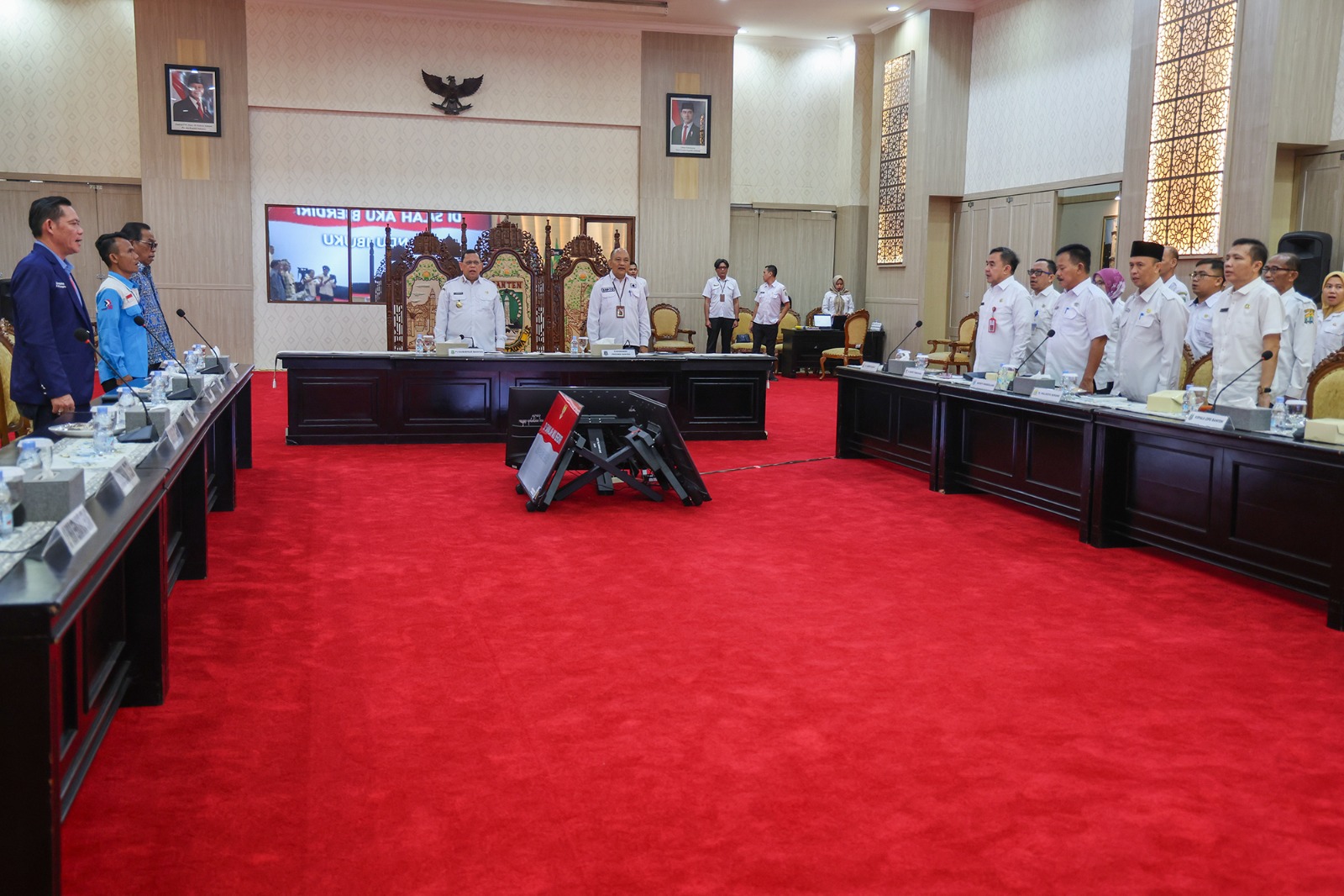 SERANG, (siberone.co.id) – Penjabat (Pj) Gubernur Banten A Damenta memimpin Rapat Koordinasi (Rakor) usulan revisi Keputusan Gubernur Banten tentang Upah Minimum Sektoral (UMSK) Kabupaten/Kota tahun 2025 di Pendopo Gubernur Banten, KP3B, Kota Serang, Rabu (15/1/2025). Rakor dihadiri beberapa Kepala Daerah di Provinsi Banten, Kepala Dinas yang membidangi Ketenagakerjaan, Dewan Pengupahan Kabupaten/Kota, Asosiasi pengusaha serta dari Serikat Buruh.