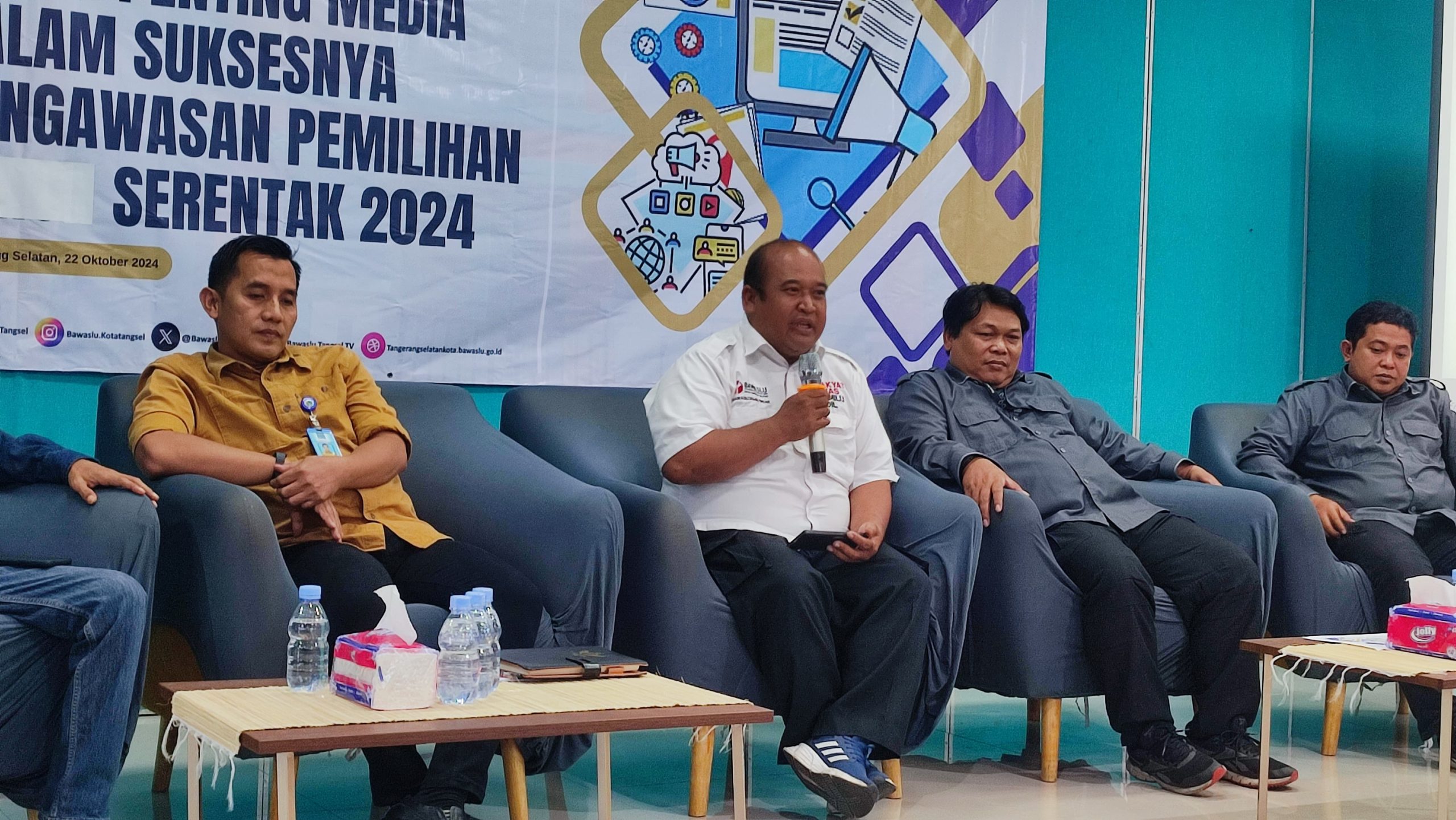 Hal itu diungkapkan Ketua PWI Tangsel Ahmad Eko Nursanto dalam diskusi bersama Bawaslu dan Diskominfo Kota Tangsel menggelar Forum Media dengan tema ‘Peran Penting Media dalam Suksesnya Pengawasan Pemilihan Serentak 2024’ di Kantor Bawaslu Tangsel, Setu, Selasa 22 Oktober 2024.