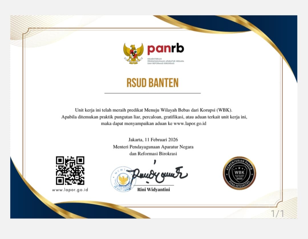 Sekretaris Daerah (Sekda) Provinsi Banten Deden Apriandhi menyampaikan apresiasi atas capaian Rumah Sakit Umum Daerah (RSUD) Provinsi Banten sebagai predikat Zona Integritas (ZI). Capaian ini merupakan implementasi dari para perangkat daerah yang menjalankan visi Gubenur Banten Andra Soni dan Wakil Gubernur Banten Achmad Dimyati Natakusumah.