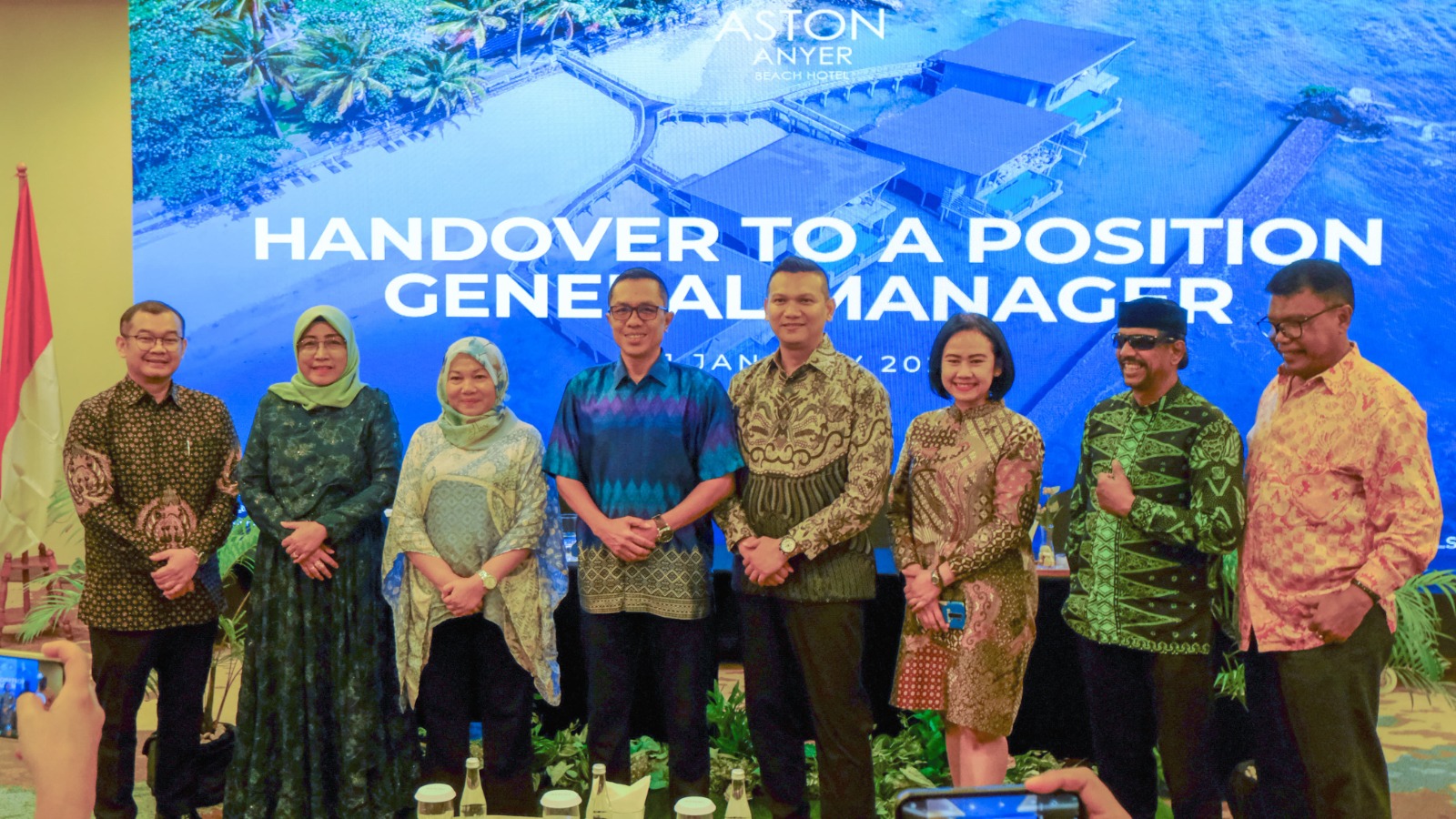 Anyer, 31 Januari 2025, (siberone.co.id) – Aston Anyer Beach Hotel sukses menggelar acara serah terima jabatan General Manager yang baru pada hari Jumat, 31 Januari 2025. Acara yang berlangsung dengan penuh khidmat ini dihadiri oleh sejumlah tokoh penting, termasuk Ketua PHRI BPD Banten, Manajemen Archipelago International, Direktur PT Fave Properti, Regional General Manager Aston Banten, serta General Manager Aston Cilegon. Acara ini juga dihadiri oleh karyawan dan rekan-rekan media yang turut merayakan momen bersejarah ini.
