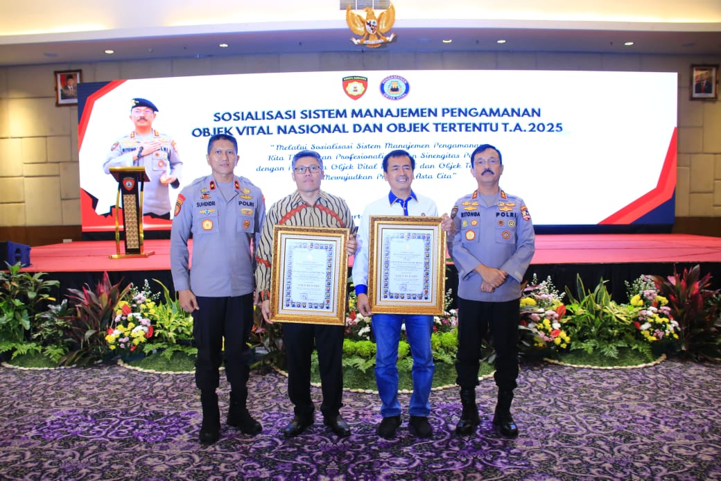 Jakarta, (siberone.co.id) – Sukses Terapkan Sistem Manajemen Pengamanan (SMP) dua pengelola obvitnas PT Cikarang Listrindo Tbk dan PT Pupuk iskandar muda di ganjar sertifikat, sertifikat diserahkan langsung oleh Irjen Pol Drs. M.H. Ritonga sebagai apresiasi dari Kapolri Jenderal Listyo Sigit Prabowo yang di serahkan Melalui Kakorsabhara Baharkam Polri, penyerahan digelar Hotel Royal Palm, Jakarta Barat, Rabu 18 Juni 2025.