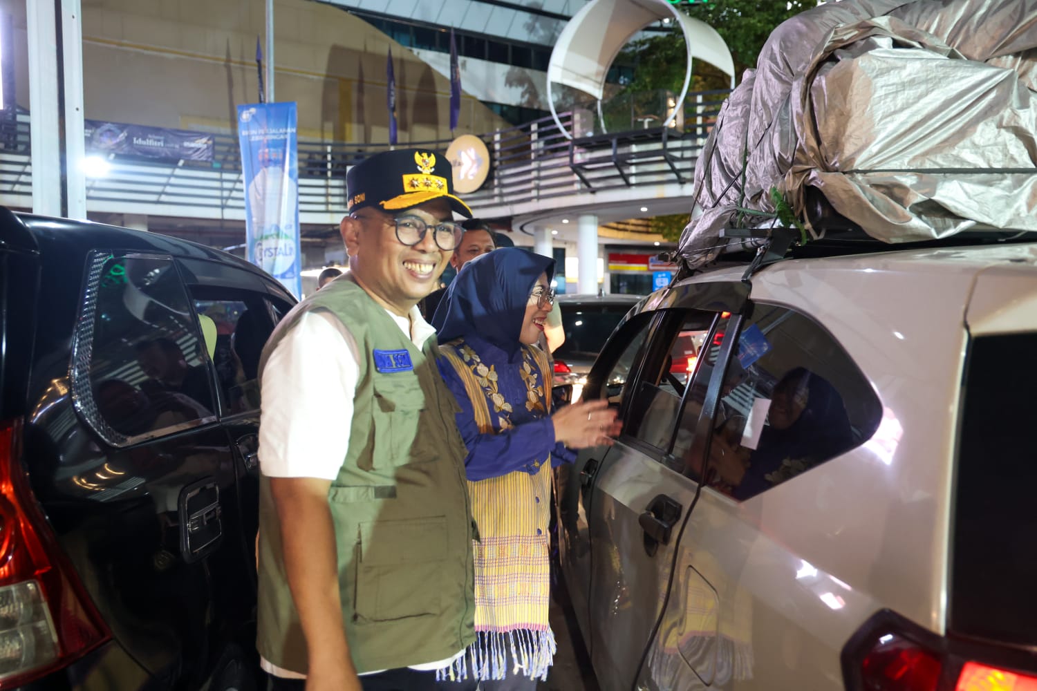 ”Sehat-sehat, ya. Semoga sampai tujuan dengan selamat,” ucap Andra kepada para pemudik.