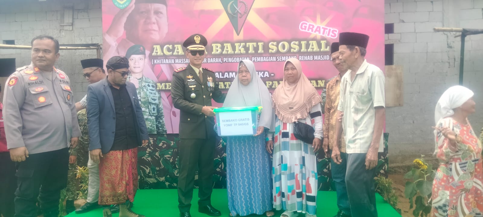 Lebak, (siberone.co.id) – Dalam rangka memperingati hari pahlawan tahun 2025, Yonif TP 840/Golok Sakti menggelar bakti sosial (baksos) berupa khitanan massal, pengobatan gratis, bagi bagi sembako gratis serta donor darah, di Desa Mekarsari, Kecamatan Sajira, Kabupaten Lebak, Senin (10/11/2025).